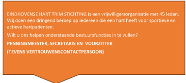 De stichting aangesloten bij overkoepelende organisaties en heeft contacten met Eindhoven Sport, Uniek sporten, Hartpatiënten Nederland, Eindhovense Sportraad, Veldhovengezond en Cordaadwelzijn.